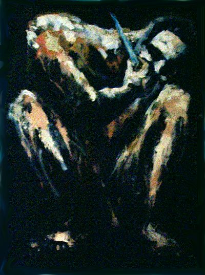 Hombre abrazado a un cuchillo